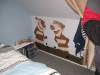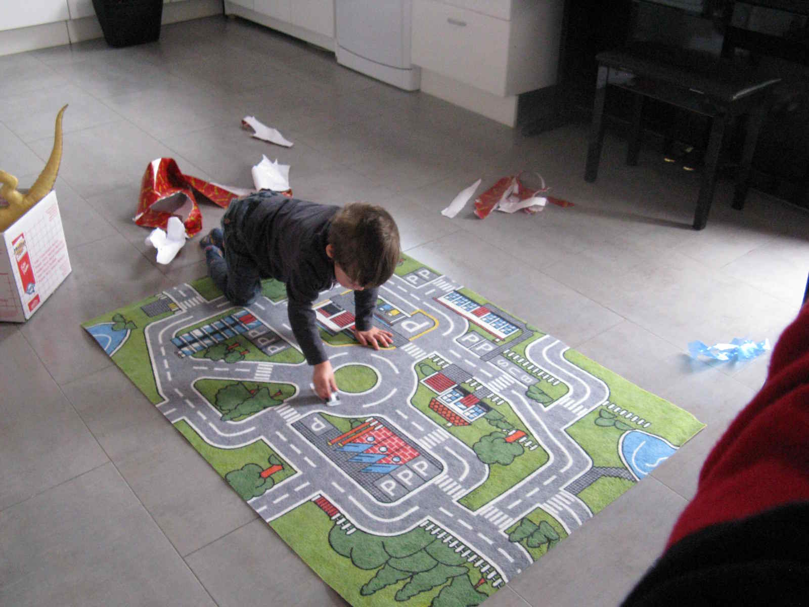 Je commence par une petite visite chez mon frère, je ne suis pas venu depuis un moment et l’étage est maintenant devenu accessible, il est toujours en cours de réalisation. Escalier sur mesure, Enzo est fier de nous présenter sa chambre avec les dessins réalisés à la main par Mélanie (clin d’oeil à la famille perrot, qui avait vu à leur première venue dans le nord, les miens dans ma chambre sur le thème de DBZ, non fini). On peut remarquer la qualité de travail même si ce n’est pas fini .C’est ensuite le moment du déballage et utilisation des cadeau d’Enzo.